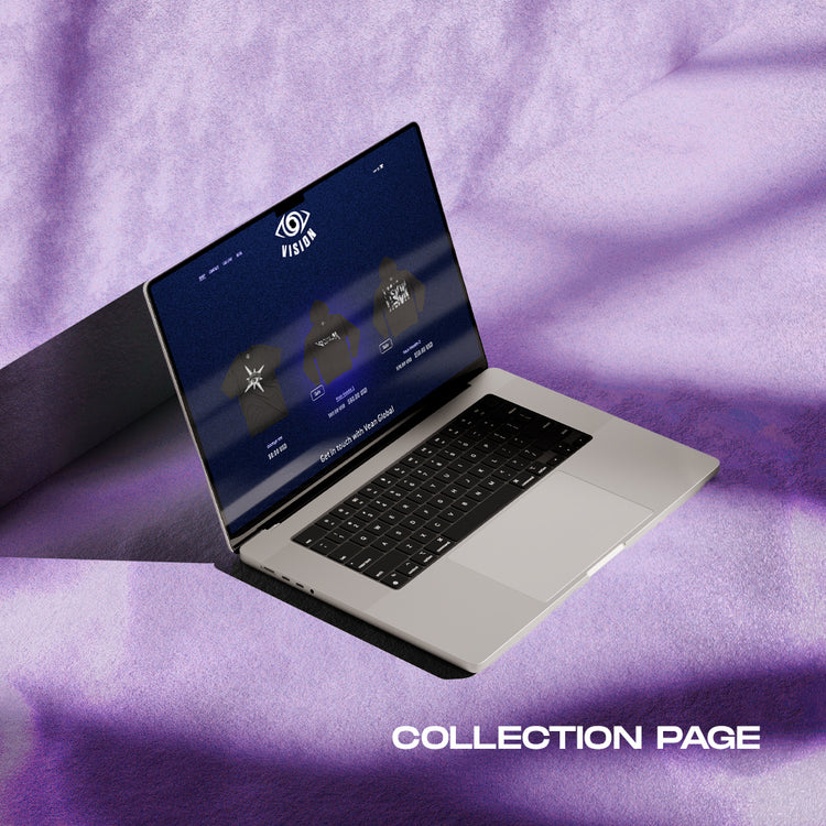 Our collection page lets you upload your own background and showcases your products in a sleek, minimal layout. Each item has a smooth hover glow effect - fully customizable to match your brand’s color palette. Simple, but striking.